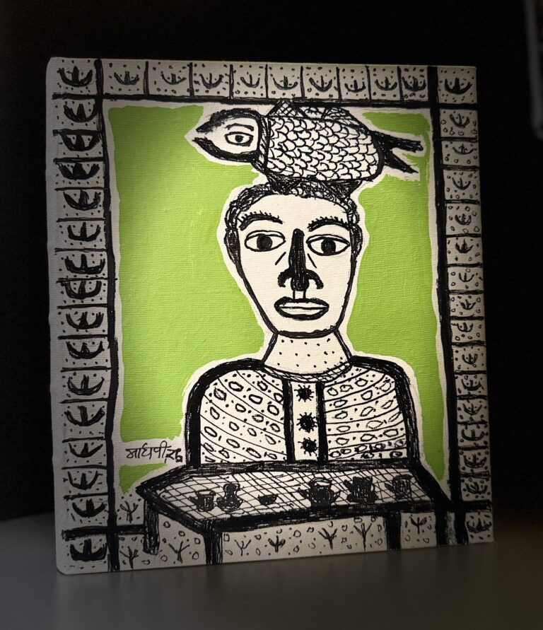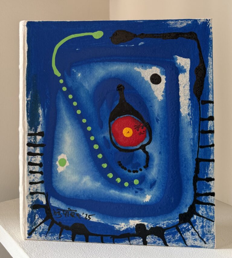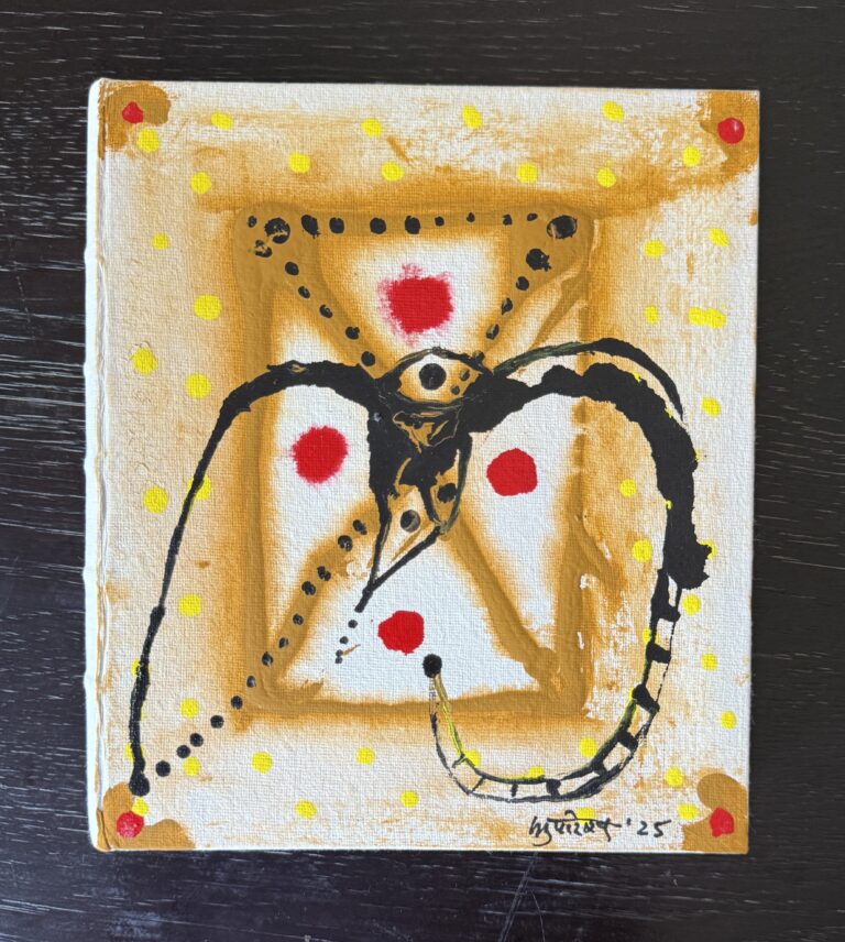 Mixed media work with embossed print, hand and pin drawing on paper, Series of 100, each one is unique and signed