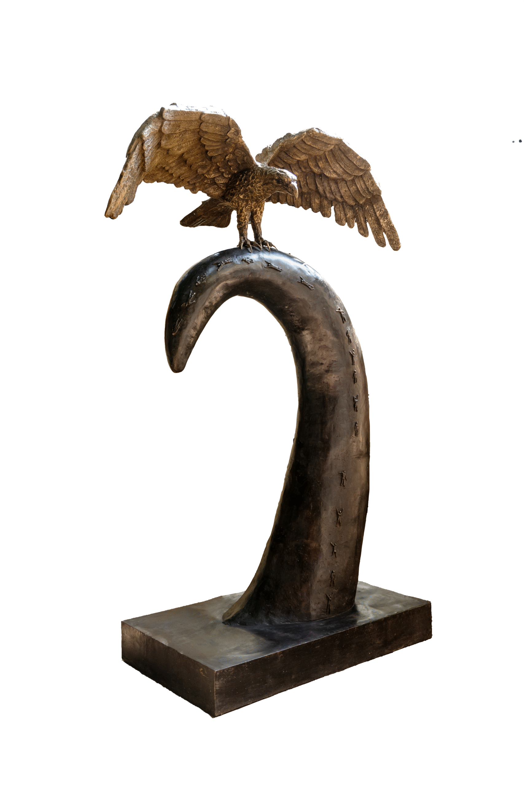 To depict the element of air, Nariman plays with scale and form. In a striking work called ‘Stilt’, a woman is lifted upwards by a murmuration of starlings to ascend to heights perhaps hitherto denied her. In ‘His Majesty’, her male counterpart is showed as an imposing eagle, which sits upon a large talon, beset with tiny humans. There is no mistaking the grandiosity of this creature as it straddles life and death in its tiny claws.